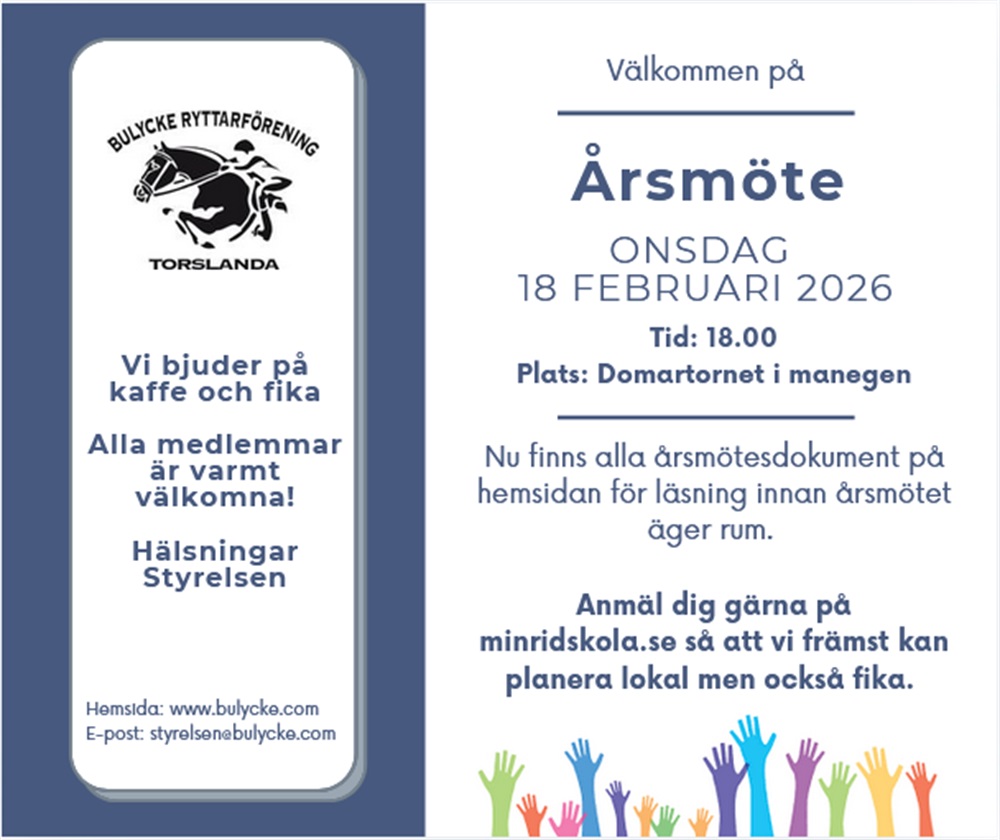 Vi ser gärna att ni som kommer på årsmötet anmäler er via minridskola.se. Detta för...