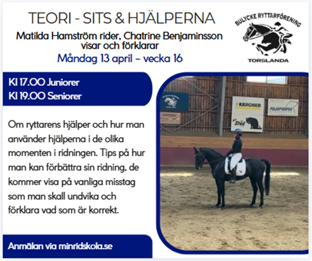 Teorin kommer att handla om ryttarens sits och hjälper! Matilda Hamström rider Chatrine Benjaminsson visar och förklarar. Tips kommer ges på hur man kan förbättra sin ridning, de kommer visa på vanliga misstag som man skall undvika och förklara vad som är korrekt.